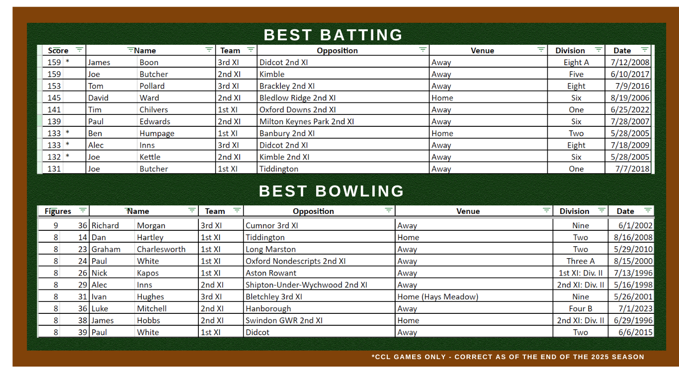 The first eleven were finally promoted from CCL2 in 2016 under the leadership of Jonathan Jenkinson and held their own in CCL1 for three years up to 2020. In the period since, the OCA teams have joined the CCL and our respective teams are spread out across the 8 CCL divisions.